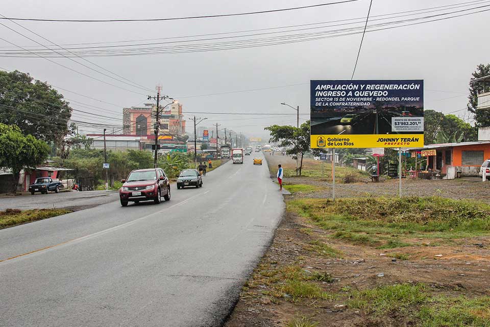 Ampliación y regeneración del ingreso a Quevedo, desde el sector 15 de noviembre, parroquia San Cristóbal, hasta el redondel del Parque de la Confraternidad Nacional, en la parroquia San Camilo.