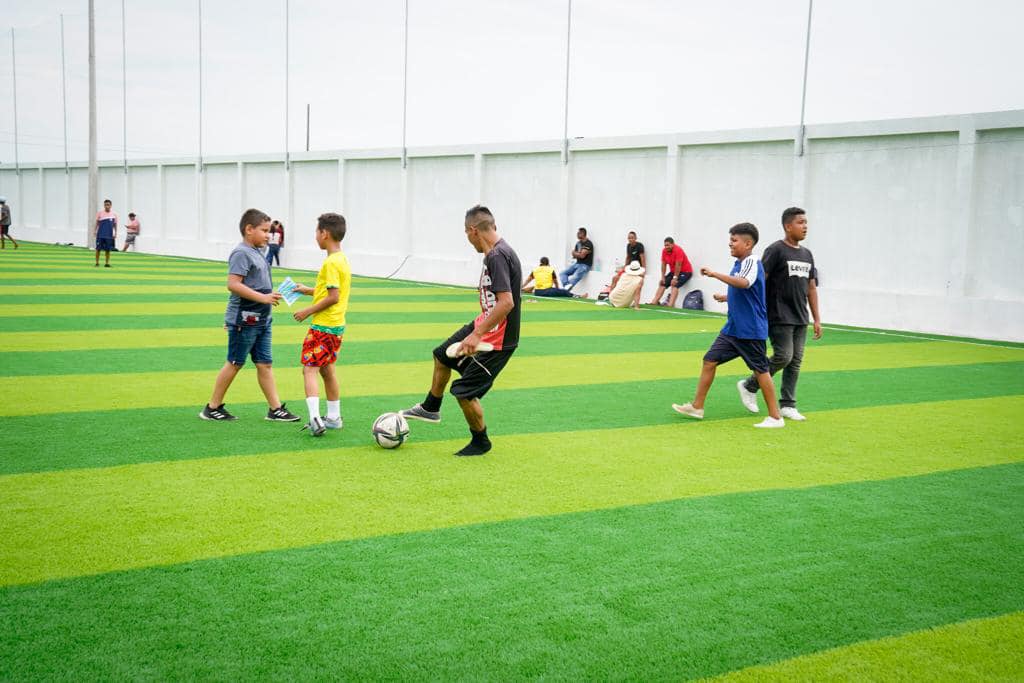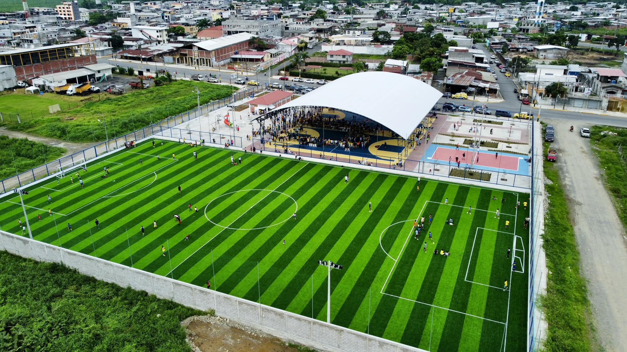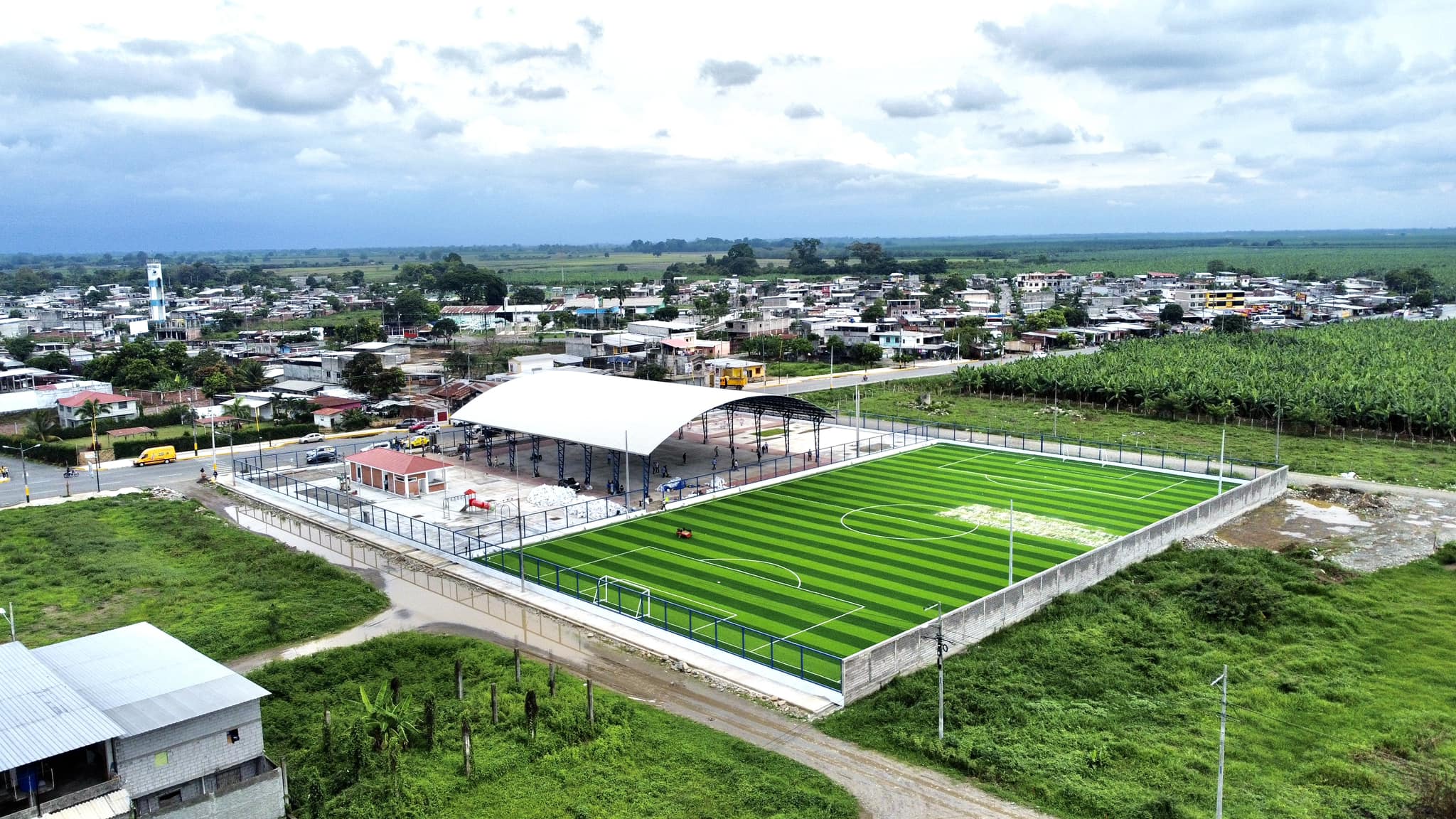 Esta obra muy esperada por los habitantes, tiene como finalidad fomentar las diferentes disciplinas deportivas y actividades socio-culturales en el cantón. Este espacio deportivo contará con canchas de césped sintético, canchas de usos multiples, espacios para juegos infantiles, camerinos, baños y bar. La obra contribuye al desarrollo e integración familiar, así como también ayuda a la reactivación economía de la población.