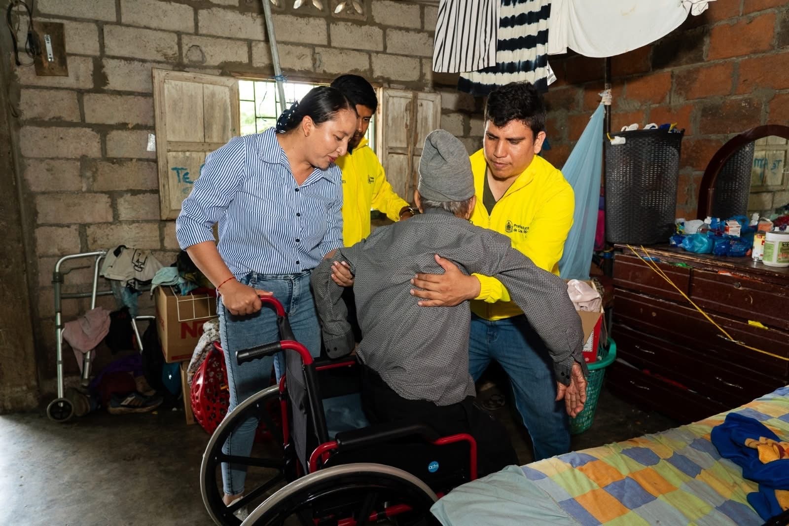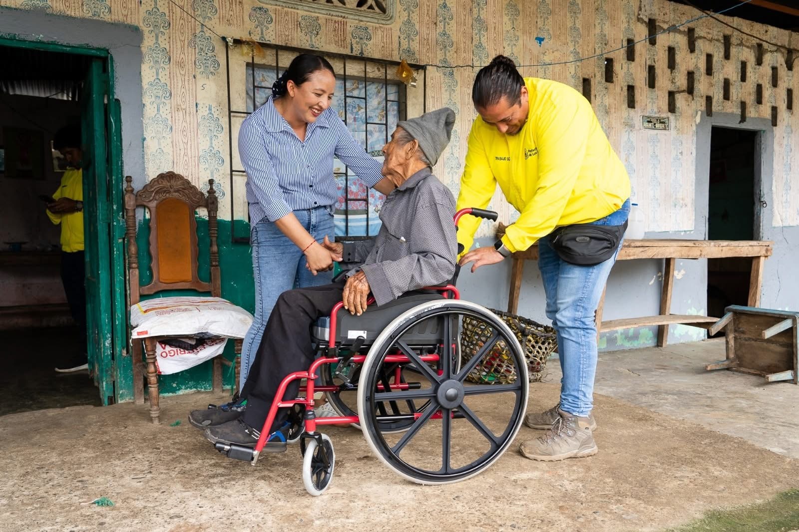 Durante la intervención se practicó una valoración integral para diagnosticar su condición de salud y determinar sus limitaciones funcionales. Tras el análisis técnico, se procedió a la entrega de una silla de ruedas, recurso esencial para facilitar su movilidad y fortalecer su autonomía diaria.